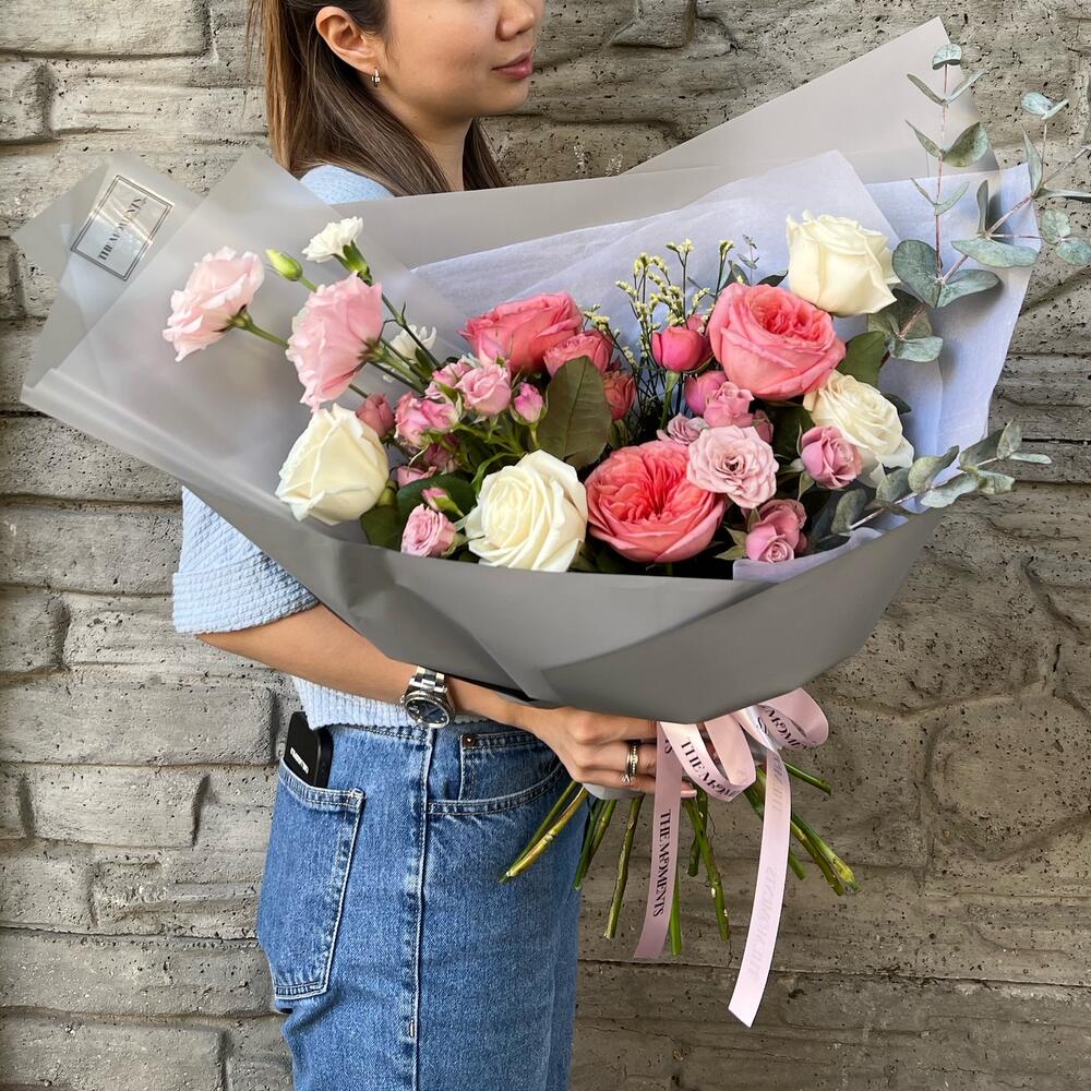 Гвоздики, Лизиантусы, Розы, Тюльпаны