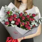 Этот яркий букет состоит из кустовых красных роз и может быть украшен зеленью и другими дополнительными элементами, чтобы придать ему более выразительный вид.
