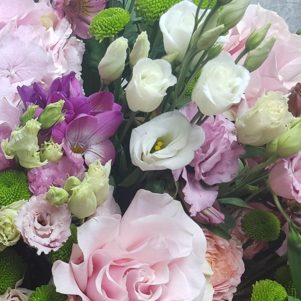 Альстромерии, Кустовые розы, Лизиантусы, Пионовидные розы, Розы, Ромашки