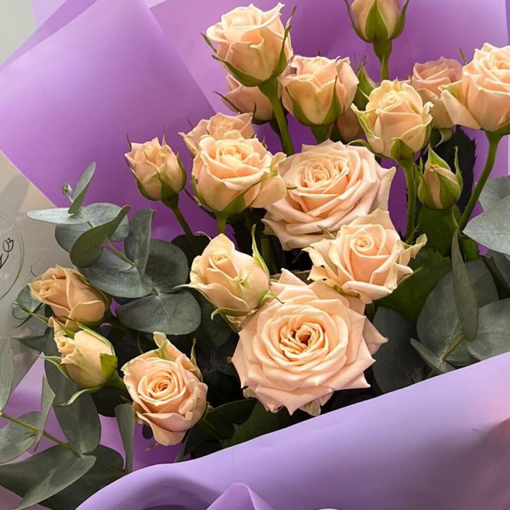 Альстромерии, Кустовые розы, Лизиантусы, Пионовидные розы, Розы, Ромашки