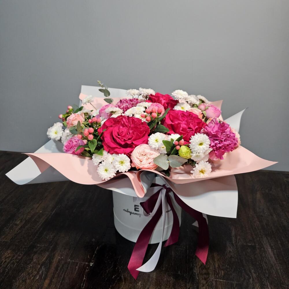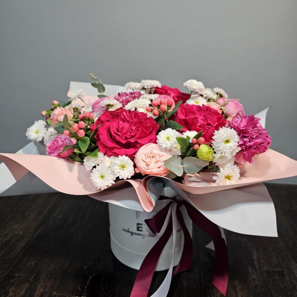 Альстромерии, Гвоздики, Кустовые розы, Лизиантусы, Розы, Хризантемы