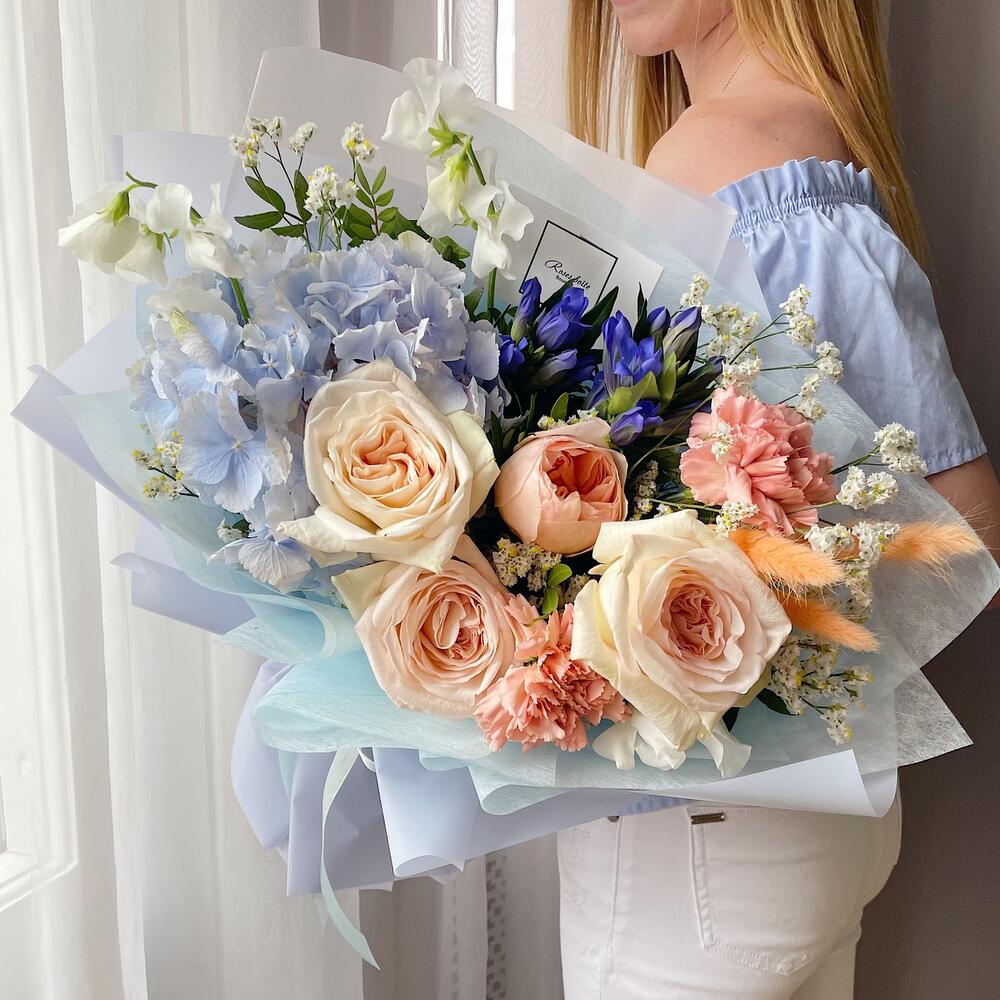 Гвоздики, Кустовые розы, Пионовидные розы, Розы