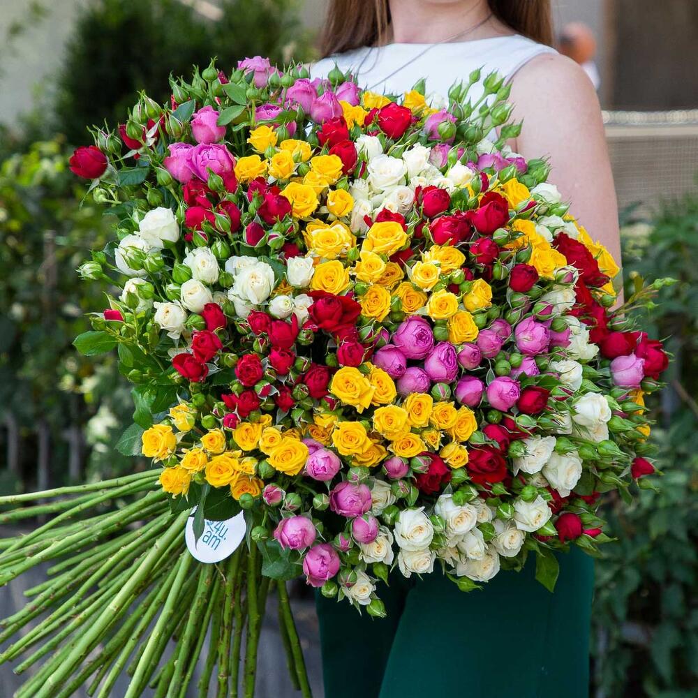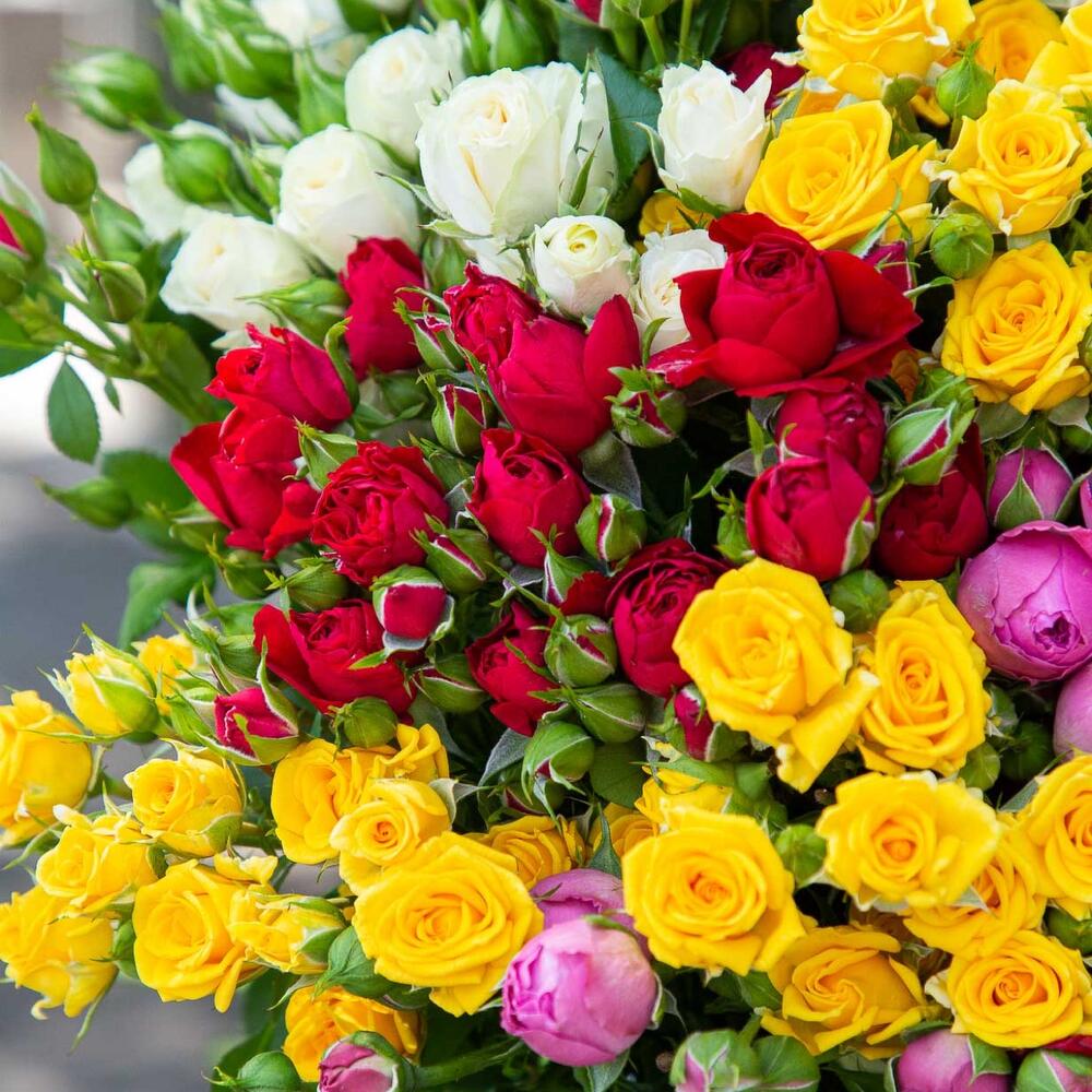 Альстромерии, Гвоздики, Кустовые розы, Лизиантусы, Розы, Хризантемы