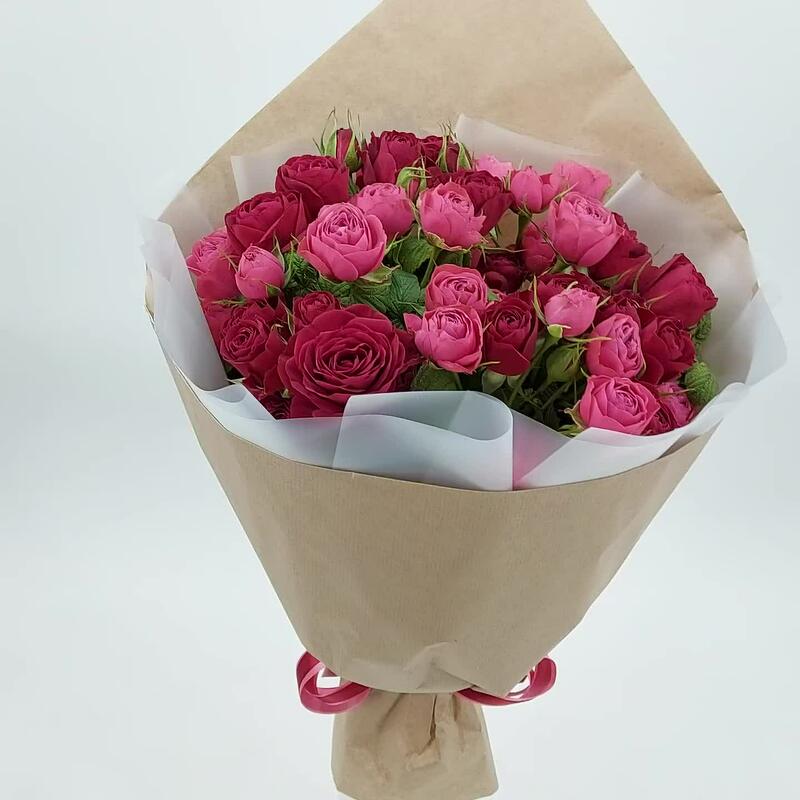 Премиальные кустовые розочки в лаконичном оформлении. Такой букет всегда уместен и подойдёт для любого повода: День Рождения, именины, годовщина свадьбы, рождение ребенка, 8 марта, День Святого Валентина, выпускной и т.д. Можно вручить маме, сестре, подруге, коллеге, учителю, любимой.