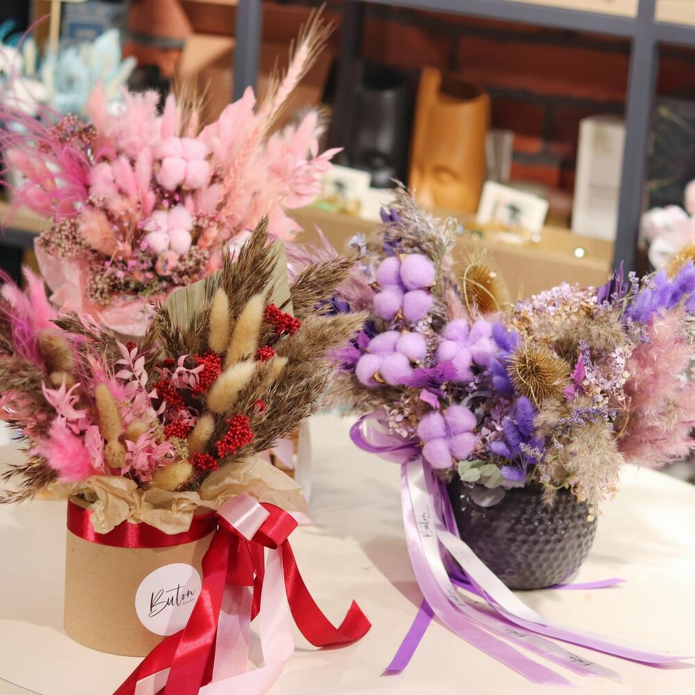 камыш декоративный – 7 шт.Лист пальмы – 1 шт.рускус стабилизированный – 1 шт.Озотамнус – 1 шт.Лагурус – 15 шт.Сетария – 1 шт.Колосья – 5 шт.Стифа – 1 шт.