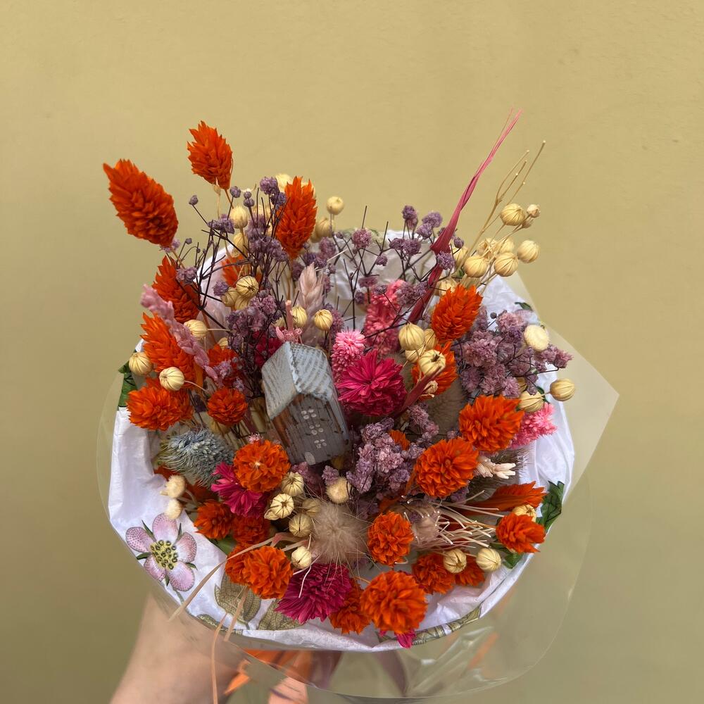фалерист – 10 шт.лен сухоцвет – 10 шт.сухоцветы микс – 30 шт.Упаковка дизайнерская – 2 шт.